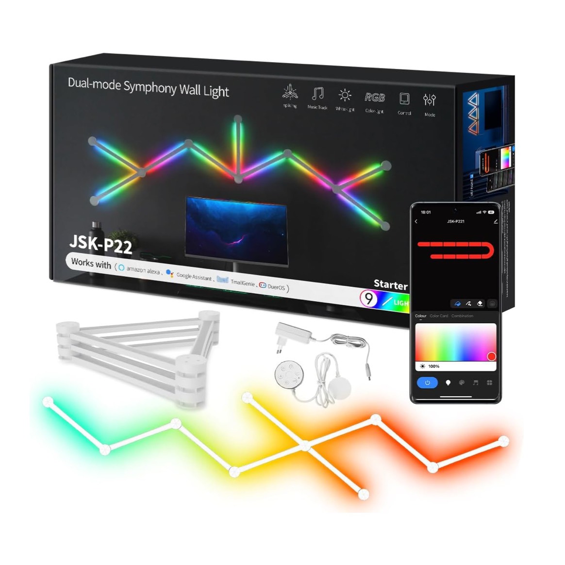 LED Smart Glide Wall Line Light – WiFi RGB LED Wall Light for Gaming Room, Living Room, Bedroom, Podcast & Gym.
